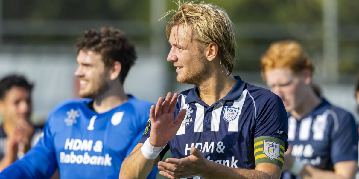 Als Chris Taberima met nog vijf minuten op de klok vanaf de kopcirkel de bevrijdende 3-2 binnensleept, ontploft iedereen in het blauw-wit. De wisselspelers veren overeind van de bank, overmand door pure blijdschap. Langs de lijn vallen wissels Tom Provily en Fabian Verzuu elkaar in de armen, uitzinnig van vreugde. Coach Ivar Knötschke brult het uit alsof hij zélf heeft gescoord. Als een paar minuten later de toeter klinkt voor het eindsignaal, breekt er bij de spelers van HDM opnieuw een glimlach door. Na drie pijnlijke nederlagen met ruime cijfers valt er duidelijk een last van hun schouders.