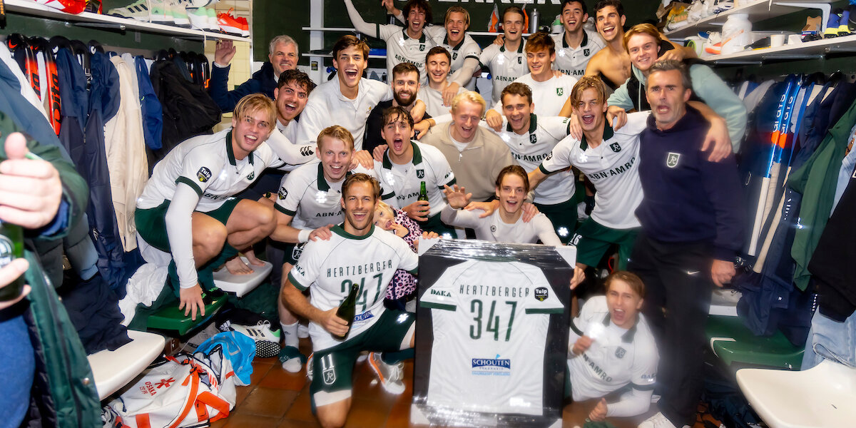 Een evenaring van het record, is ook knap, zo luidt al het oordeel langs de kant. Dan komt nummer 347 wel vrijdag, uit tegen KZ. Met nog twee minuten op de klok staat Hertzberger in de wissel. Hij wacht ongedurig op zijn wisselmoment. Het duurt en het duurt. Dan mag hij eindelijk los. Hertz wil nog wel, maar zijn ploeggenoten lijken het wel te geloven. Het is nat en koud. De warme kleedkamer lonkt. Maar dan is daar die versnelling van Van Heijningen. En die backhand. ‘Ik kan dan denken dat hij voor zijn eigen actie gaat en niet meelopen, maar dat doe ik niet. Ik ga altijd. Nu lag ik daar. Dan is het kassa.’