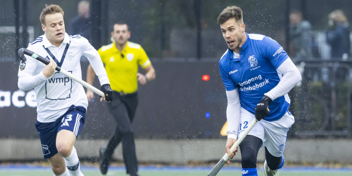 Het was voor de rust een van de spaarzame acties in cirkel van de gasten uit Amsterdam. Want hoewel Kampong veruit de meeste tijd de bal had, bleef de ploeg van coach Jesse Mahieu moeiteloos overeind. De coach zag dat zijn team via Marlon Landbrug wel tot twee keer toe gevaarlijk werd. Maar De Wijns generatiegenoot David Harte, stond bij zijn terugkeer na een periode van absentie direct weer op zijn post.