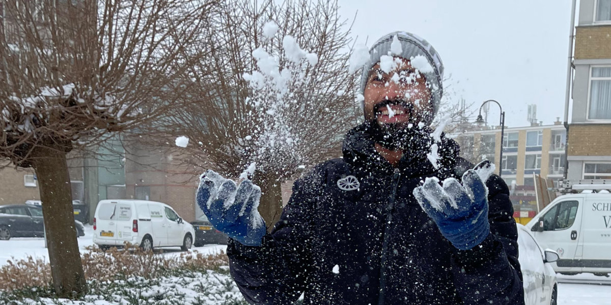HGC-speler Devindar Walmiki zag voor het eerst in zijn leven sneeuw. De 28-jarige Indiër wist afgelopen week niet wat hij zag. De hockeyer had ‘de magie van de natuur’ alleen in films gezien. Walmiki: ‘Wie had kunnen denken dat er zachte wollen snoepjes uit de lucht vallen die de hele oppervlakte in wit zou veranderen?’ Bekijk hieronder de eerste winterwonderland voor Walmiki.
