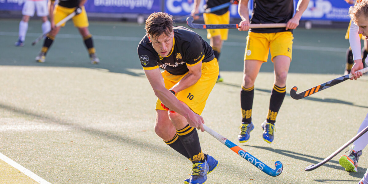 Tot zondag, tegen promovendus Voordaan. De kans dat hij nog een bal op zijn gebit zou krijgen was dus klein, maar het ‘lukte’ de Brabantse pechvogel toch. Nu zelfs zo erg dat zijn tanden op het veld lagen. ‘Ik zat laag in een duel. Mijn tegenstander wilde over mijn stick heen flatsen, maar raakte de bal verkeerd waardoor-ie omhoog schoot. Ik kreeg de bal recht in mijn gezicht. De bal was minder hard dan bij Pinoké, maar er vlogen nu direct twee tanden uit. Daar waren mijn teamgenoten naar op zoek.’