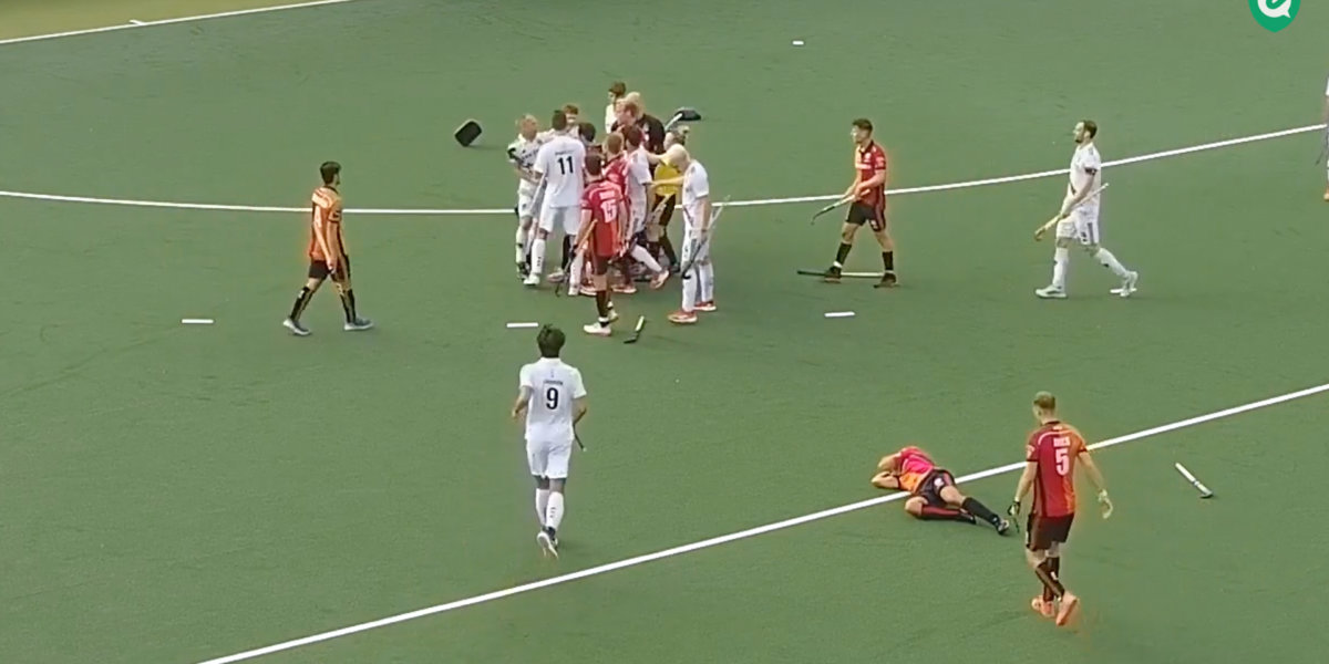 Zoals op de video is te zien, ging het in de slotfase van het duel tussen Oranje-Rood en Amsterdam het mis. Na een opstootje tussen Teun Rohof en OR-aanvaller Thomas Briels, die vlak daarvoor door Matthew Dawson werd opgevangen, kreeg Rohof van de toegesnelde Sander Baart een forse duw. Het gevolg was duw- en trekwerk tussen een groot aantal spelers van beide teams. Nadat de stofwolken waren neergedaald, werd de wedstrijd uitgespeeld. Amsterdam won de wedstrijd met 2-4.