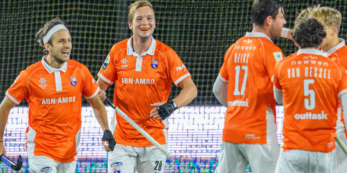 ‘Ik zat me op te vreten langs de kant’, vertelt de 136-voudig international. ‘Gelukkig liep het goed af. We begonnen ook meteen sterk vandaag. We hadden allemaal het gevoel dat we een antwoord moesten geven op de blamage van zondag. En ja, het ging hard. Dat is al een verschil met de afgelopen wedstrijden. Toen misten we ritme in de corner. Het aangeven, stoppen en de pushes gingen allemaal net niet-super. Nu vlogen al heel snel twee corners binnen. Dat helpt wel. Het ging na die kaart nog alle kanten op, maar we verdedigden hun belangrijke spelers goed. Baas (al jaren de bijnaam van Maurits Visser, red.) pakte nog een paar belangrijke corners. Allemaal dingen die vandaag top waren.’