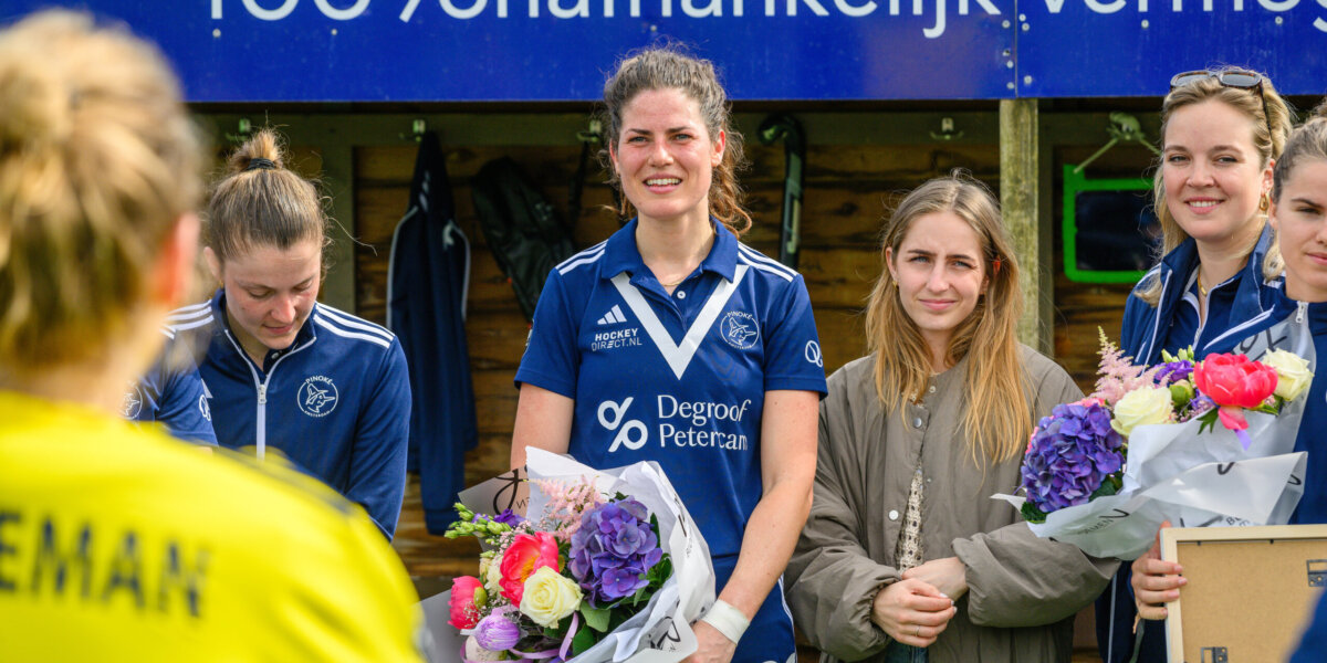 ‘Ik hoop dat ik hier komend seizoen vaak langs de lijn te vinden ben’, besluit ze. ‘Dat ik kan juichen, wanneer ze wel de play-offs halen. Dat kunnen ze zeker.’ Kerstholt zien we – na de laatste wedstrijd tegen Bloemendaal van komend weekend – niet meer terug op een hockeyveld. Althans.. ‘Dat zeg ik nu. Met mijn grote mond. Maar als ik in september een appje krijg of mijn naam op de lijst mag… zien we dat dan wel weer.’