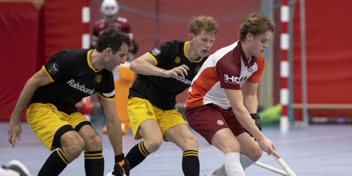 Het zaalseizoen begon voor ‘De Almeerse’ niet eens zo goed. Her en der sprokkelde de ploeg wat puntjes binnen, maar pas in de laatste speelrondes wisten ze écht een vuist te maken. ‘We wonnen van Tilburg en Oranje-Rood en daarna twee keer op een dag van Den Bosch (met 8-2 en 5-3, red.), dat ook in de kampioenspoule zit. Daarbij hadden we wel wat mazzel. Den Bosch had met een paar zieken en veldinternationals Koen Bijen en Tijmen Reijenga waren niet van de partij. Dat buitenkansje hebben we goed benut.’