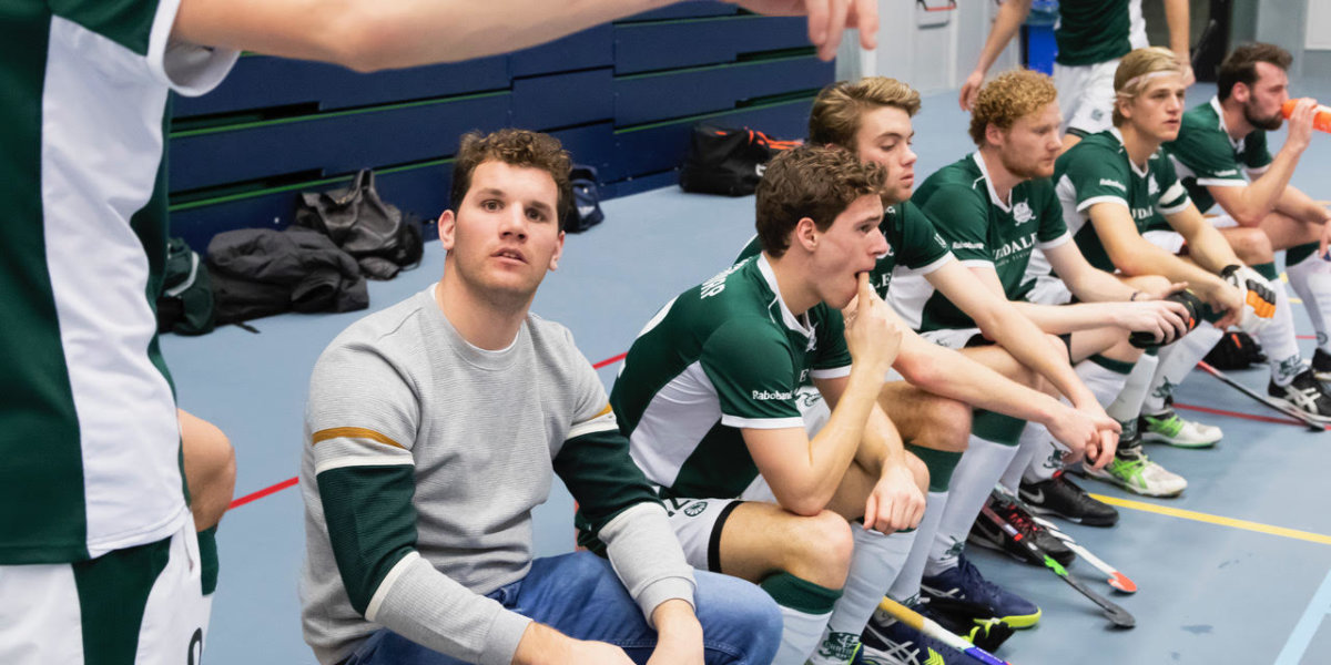 In de wedstrijden tegen Almere en Oranje-Rood speelden vandaag maar drie spelers die vorig jaar ook al in de selectie van Cartouche zaten. Vooral de strijd met Almere lag dicht bij elkaar. In de slotminuut scoorde Almere de 2-3, waarna Cartouche in een uiterste poging de keeper van het veld haalde. Dat mocht niet baten voor de ploeg uit Leidschendam. Doorman baalt terwijl hij op zijn telefoon de standen controleert. ‘Volgende week spelen we tegen Pinoké en dan weten we wat ons te doen staat.’