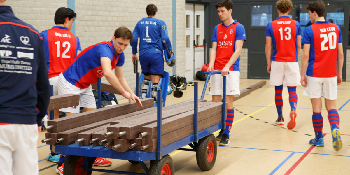 Nadat alle balken netjes op het wagentje waren gelegd, vormden de spelers met de manager en coach Willem Hertzberger een kring. De teleurstelling was nog steeds zichtbaar op de gezichten. Er werd gesproken. Er klonk applaus, waarna iedere speler een flinke knuffel overhad voor de coach, die zijn eerste klus als hoofdcoach in de zaal in mineur zag eindigen.