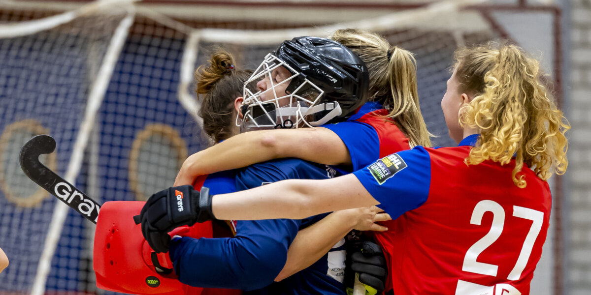 ‘Ik zat er lekker in’, beaamt ze. ‘Ik vind zaalhockey fantastisch. Als keeper ben je veel meer betrokken bij het spel dan op het veld, ook met coachen. Ik probeer mijn verdediging zo neer te zetten dat de ballen die komen voorspelbaar zijn. Die ballen had ik vandaag allemaal. En zo’n laatste redding geeft een heerlijk gevoel. Zo draagt iedereen bij: Lana [Kalse] maakte er twee, Mette [Winter] strooit met passes en ik pak de ballen. Dat is teamsport.’