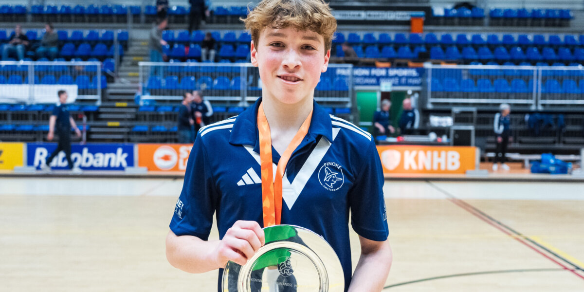 Hij trok zondag in de NK-finale met Pinoké JO16-1 (3-0 winst op KZ) de aandacht met zijn assist bij de 2-0: een pass tussen zijn eigen benen door. Verdediger Neil Stronach Hardy is nog maar vijftien jaar oud, maar nu al een publieksspeler. ‘Het mooiste vind ik om mijn mannetje op te zoeken en acties te maken.’