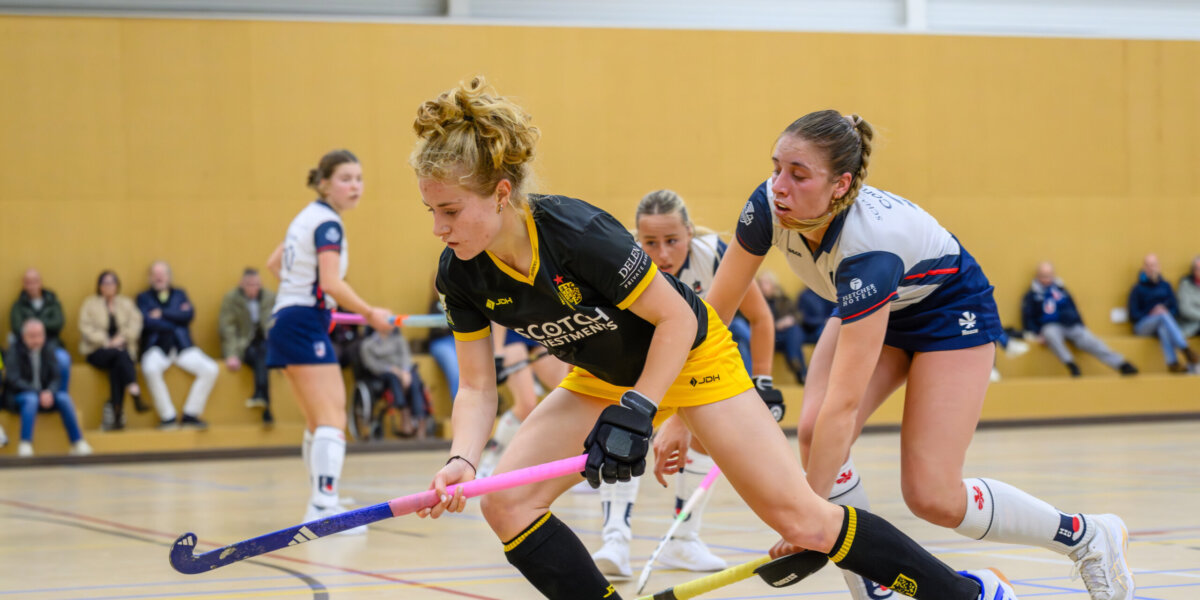 In poule B staat Amsterdam op poleposition om de play-offs te halen. De ploeg pakte zondag in Eemnes twee keer de volle buit door achtereenvolgens HGC (5-2) en Hurley (2-1) over de knie te leggen. Achter de koploper (achttien punten) volgen drie ploegen met elk vijftien punten: HDM, Den Bosch en HGC. Zij maken volgende week zaterdag nog alledrie kans om zich te kwalificeren voor het NK Zaal.