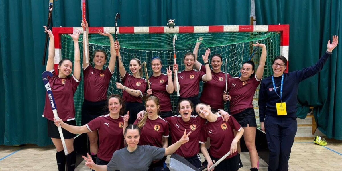 De dames van Sagene IF uit Noorwegen winnen goud tijdens de EuroHockey Indoor Club Challenge II. Foto: Ville Järvinen/@foto_ville (IG)
