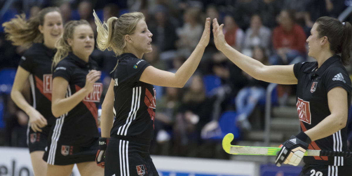 Amsterdam staat nu op de derde plaats, maar moet bij de eerste twee eindigen om de halve finale te mogen spelen. Zaterdag staan niet de gemakkelijkste ploegen op het programma: Kampong (huidige nummer twee) en hdm (huidige nummer vier). Ook zij maken allebei nog kans op de halve finales, en dus staat Amsterdam twee stevige wedstrijden te wachten. ‘Het wordt zeker pittig’, denkt aanvoerder Julia Müller. ‘Maar we hebben er ook heel veel zin in en gaan er natuurlijk alles aan doen om de punten te pakken.’