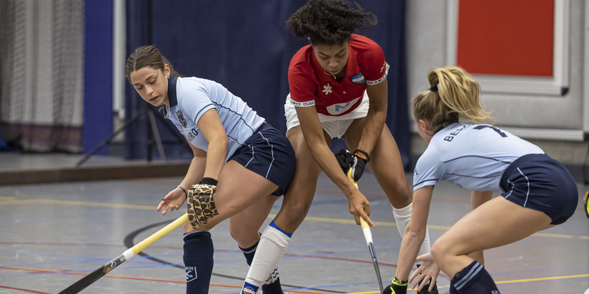 ‘Op het veld zijn we dit seizoen met vijftien nieuwe speelsters begonnen. We waren de eerste wedstrijden vooral zoekende. Zoekend naar hoe we moesten staan, hoe we elkaar konden vinden en hoe we elkaar konden aansturen. In de zaal begint het liedje in feite weer van voren af aan.’