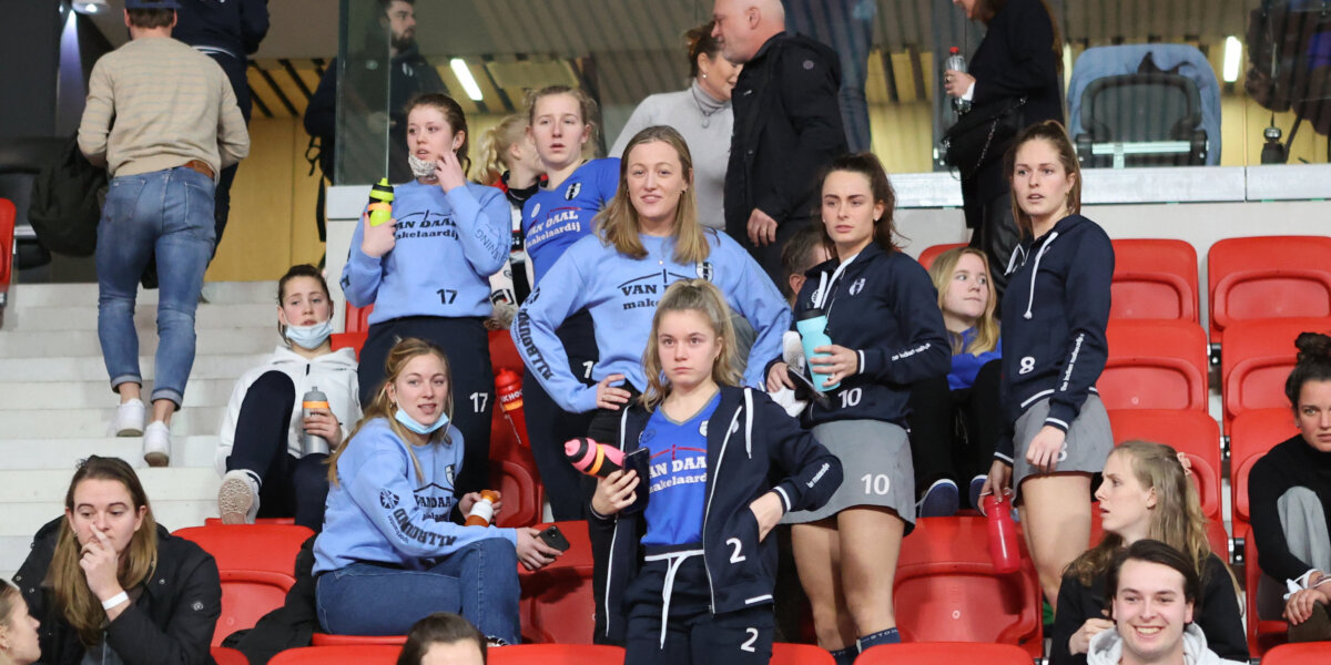 ‘We moesten wachten. Iedereen zat er vol spanning. We waren volop aan het rekenen. Welke scenario’s zouden goed voor ons uitpakken’, legde Myrthe Koppers uit. De matchwinner tegen Bloemendaal – met twee goals – keek nagelbijtend toe. Tot die laatste anderhalve minuut, die voor Ring Pass alles verpestte. De anderhalve minuut vol ongeloof, onbegrip en woede. Toen de toeter klonk stortte de wereld van Ring Pass even in. De een vertrok al stampvoetend naar de kleedkamer, terwijl bij de meesten de tranen over de wangen biggelden.