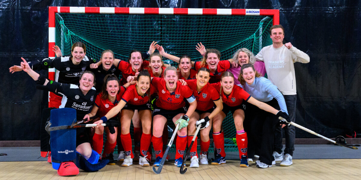 ‘Ik heb er wel een traantje om gelaten’, zei Nijmegen-verdediger Sanne Vormeer. Zondagmiddag liep ze tegen haar tweede gele kaart aan van het zaalseizoen. Daardoor was uitgerekend zij, de topscorer en strafcornerspecialist van de ploeg, geschorst voor de beslissende wedstrijd tegen Laren. Ondanks haar afwezigheid promoveerde Nijmegen toch naar de Hoofdklasse.