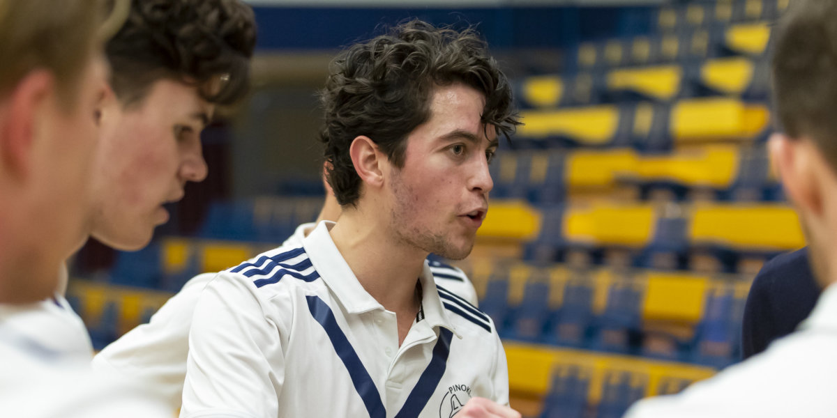 Wat zijn de ambities van Niek Merkus, die deze zomer overstapte van Amsterdam naar Pinoké? ‘Ik wil de nieuwe Ferg…’, grapt hij. Dan stopt hij met praten, op de tribune van de Sporthallen Zuid, nadat zijn team voor de vijfde achtereenvolgende keer heeft gewonnen. Nu van SCHC (3-5).