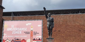 De man achter het standbeeld bij het Olympisch Stadion
