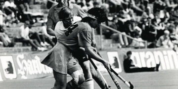 De publiekswissel van Lisette Sevens in de gouden wedstrijd van 1984