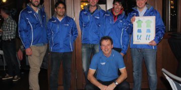 Hockeyers HC Rijnvliet in limegroen/blauw tenue